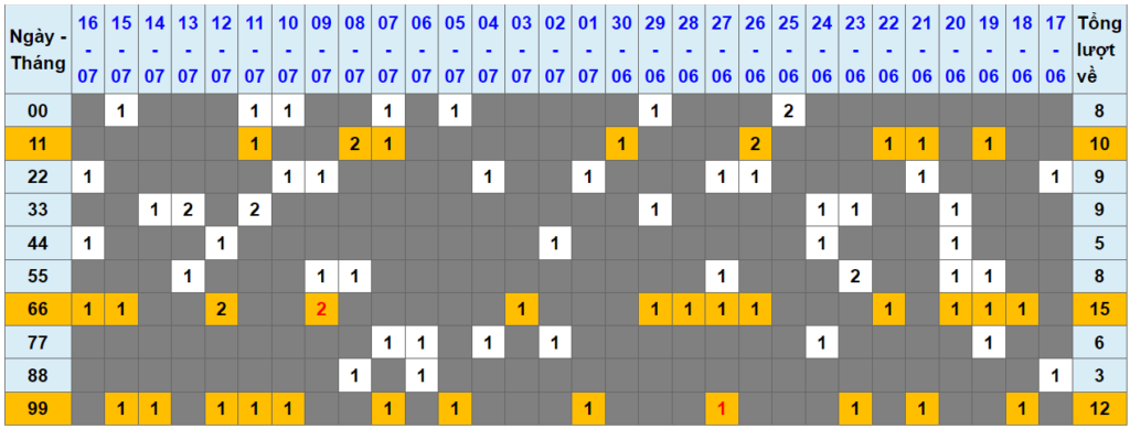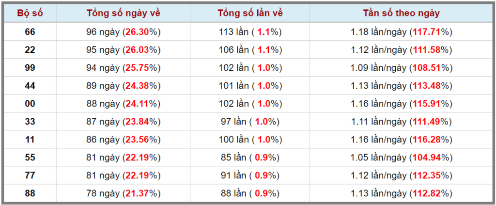 | Cặp lô | Số Lượng Cầu Báo | Khả Năng Về |