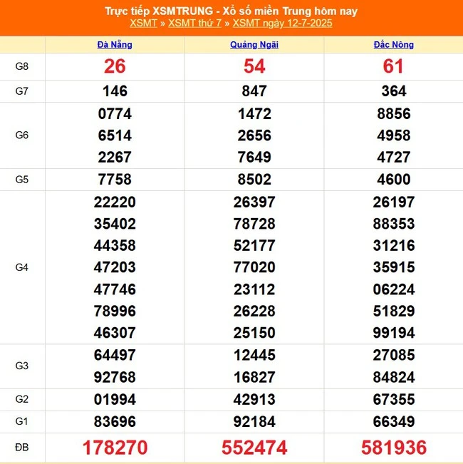 Chốt lô Quảng Nam đặc biệt ngày hôm nay 16/07/2025 như sau: